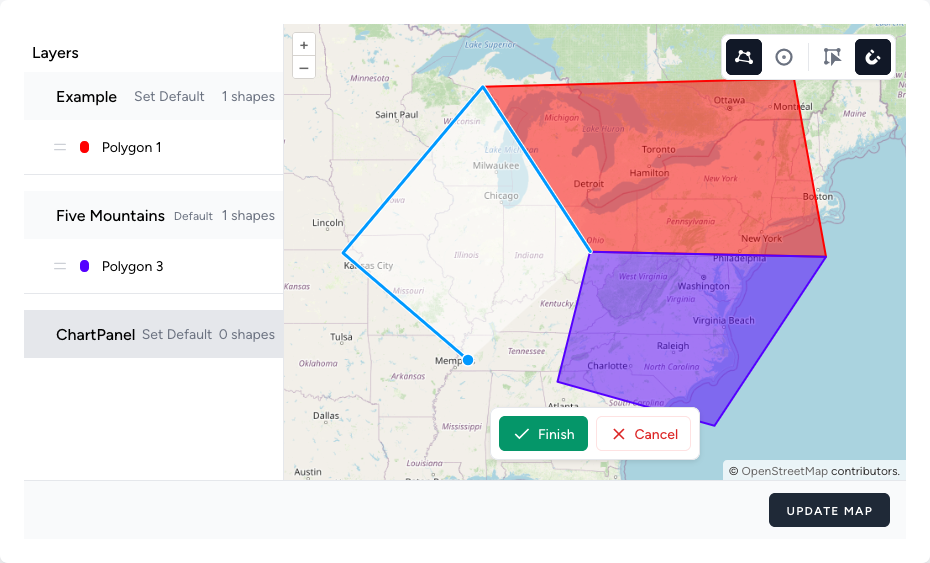 When you are finished editing the map, apply your changes by clicking the “Update map” button at the bottom of the screen.