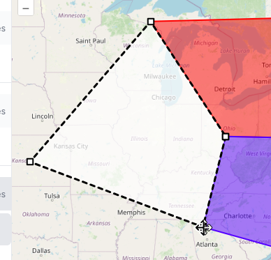 - The map view defines the regions as shapes on a map.