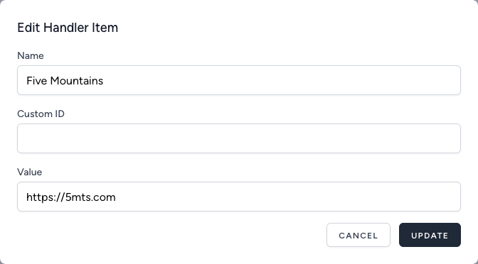 To edit the name or redirection URL of an existing region, click the “edit” button (“custom ID” is currently unused).